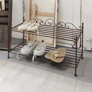 Ten elegancki regał na buty w stylu francuskim udowadnia, że piękno i funkcjonalność mogą tworzyć harmonijny związek. Oferuje miejsce na około sześć par butów. Czyste linie prostych rozpórek, które służą jako półka, uzupełniają lekko arabeskowe, splecione ornamenty. Dodatek, który zdecydowanie przyciąga wzrok. Twoi przyjaciele, znajomi i goście będą pod wrażeniem, gdy zostawią swoje eleganckie buty w tak niezwykłym miejscu.