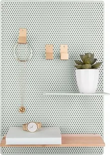 Kompaktowe wymiary tablicy (52 x 35 cm) sprawiają, że zmieści się w wąskich korytarzach i małych przestrzeniach, dodając im funkcjonalności i stylu. Jej nowoczesny design, stonowana kolorystyka oraz siateczkowa wprowadzają lekkość do każdego wnętrza, a jednocześnie umożliwiają łatwe przypinanie notatek i innych przedmiotów. Nie czekaj dłużej! Dodaj tablicę na notatki PERKY MESH do swojego wnętrza i ciesz się zorganizowaną przestrzenią oraz estetycznym akcentem, który łączy funkcjonalność z nowoczesnym stylem. Present Time Perky Mesh Memo Board - Grayed JadePresent Time Perky Mesh Memo Board - Grayed Jade to praktyczny i stylowy dodatek do domu. Tablica zawiera dwie półki, na których można przechowywać piękne rzeczy i trzy haczyki, na których można je powiesić.