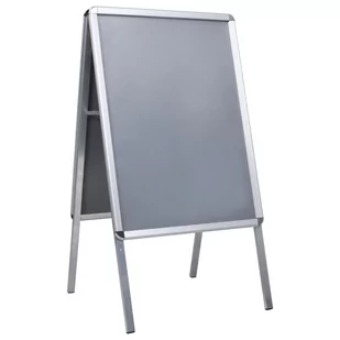Kolor: srebrny Materiał: stop aluminium, płyta PS, arkusz ochronny z PVC Wymiary całkowite: 63,4 x 80 x 118 cm (dł. x szer. x wys.) Powierzchnia prezentacji: 57,4 x 82,1 cm (dł. x szer.) Zalecany rozmiar plakatu: A1 (841 x 594 mm) Jednostronna ekspozycja x arkusz ochronny w zestawie Produkt składany i przenośny Wymagany montaż: