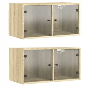 vidaXL Szafki wiszące, 2 szt, szklane drzwi, dąb sonoma, 68,5x37x35 cm