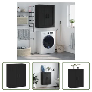 Szafka ścienna czarna 69,5x34x90 cm materiał drewnopochodnyDzięki eleganckiemu wzornictwu ta szafka ścienna będzie ponadczasowym dodatkiem do wystroju wnętrza. Wytrzymały materiał: Drewno inżynieryjne to materiał o wyjątkowej jakości i gładkiej powierzchni, który charakteryzuje się wytrzymałością, stabilnością i odpornością na wilgoć. Dużo miejsca do przechowywania: Dzięki 3 przegrodom z 2 drzwiczkami szafka oferuje dużo miejsca do przechowywania przedmiotów codziennego użytku.