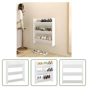 Przechowuj swoje buty schludnie i zawsze w zasięgu ręki w tej nowoczesnej szafce na buty! Charakteryzuje się ona prostym designem, który harmonijnie wtapia się w przestrzeń mieszkalną. Szafka na buty jest wyposażona w 3 uchylne półki, dzięki którym buty, kozaki i kapcie będą uporządkowane i schludne. Ten stojak na buty jest montowany na ścianie, co pozwala zaoszczędzić miejsce i utrzymać porządek w wejściu i na podłodze. Można go zamocować na dowolnej wysokości. Ponadto organizer na buty można łatwo wyczyścić wilgotną szmatką.