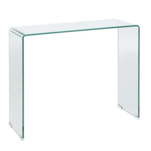 Minimalistyczna konsola Minimalistyczna konsola, która doskonale sprawdzi się we wnętrzach inspirowanych stylem skandynawskim, jak i tych w nowoczesnym, modernistycznym klimacie. Stół wykonany jest z wysokiej jakości szkła hartowanego oraz posiada on bezpieczne, zaokrąglone krawędzie. Całkowicie przezroczysty, nada twoim wnętrzom powiewu świeżości. Konsola może służyć jako toaletka w sypialni czy stolik, na którym wyeksponujemy kwiaty lub ramki do zdjęć w salonie. Szczegóły: Kolor: Przezroczysty.