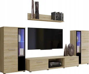 Wykonanie: Korpus wykonany z płyty wiórowej laminowanej 16 mm, meblościanka w pełni wyposażona,