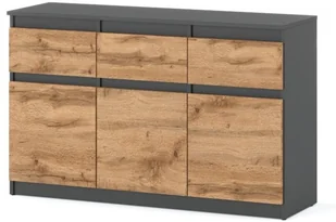 Komoda szara z drewnem do salonu nowoczesna rtv 120cm 3 szuflady dąb wotan