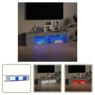 Ponadto szafkę pod telewizor można łatwo utrzymać w czystości za pomocą wilgotnej ściereczki. Uwaga: Produkt jest wyposażony w złącze USB, ale certyfikowane źródło zasilania USB 5 V nie jest dołączone do zestawu. Kolor: betonowy szaryMateriał: Materiał drewnopochodnyWymiary: 135 x 39 x 30 cm (dł. x szer. x wys.)Z oświetleniem LED RGBWymagany montaż:
