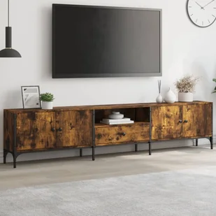 Szafka RTV z szufladą dąb wędzony 200x25x44cm materiał drewnopochodnyDzięki modnemu, a jednocześnie praktycznemu wzornictwu, ta szafka pod telewizor będzie przyciągać wzrok w każdym pomieszczeniu. Trwały i solidny materiał: Drewno inżynieryjne to wyjątkowej jakości materiał o gładkiej powierzchni, który charakteryzuje się wytrzymałością, stabilnością i odpornością na wilgoć. Metalowa rama szafki pod telewizor zapewnia solidność i stabilność. Dużo miejsca do przechowywania: