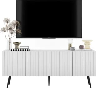 Meble Lindner Meble Lindner Komoda RTV Glamour Szafka RTV Glamour Biała 150 cm Ryflowane fronty Nogi Czarne Metalowe