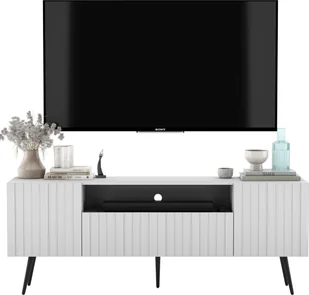 Meble Lindner Meble Lindner Loft Szafka RTV Biały Mat Nowoczesna Komoda RTV Glamour 150 cm Ryflowane fronty Nogi Czarne Metalowe