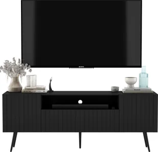 Meble Lindner Meble Lindner Loft Szafka RTV Czarny Mat Nowoczesna Komoda RTV Glamour 150 cm Ryflowane fronty Nogi Czarne Metalowe