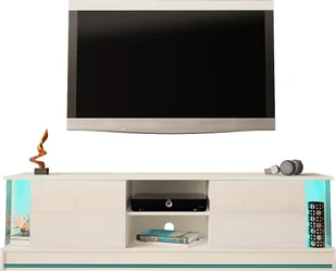 MEGSTYL SZAFKA RTV 185CM Z LISTWĄ LED - EFECTO 1 biały mat - biały połysk