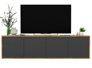 150 cm, głębokość: 35 cm. Materiał: Wysokiej jakości 16 mm laminowana i foliowana płyta meblowa o klasie higieny E1. Modny kolor: Dąb wotan + grafit. Szukasz stylowej i praktycznej szafki rtv? Kliknij w link i sprawdź szafki rtv loft w sklepie Edinos.