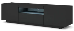 Przechowywanie z klasą: Dwie zamykane szafki, schowek oraz otwarta półka zapewniają wystarczająco dużo miejsca na miejsce na urządzenie multimedialne, płyty i akcesoria. Technologiczny akcent: Półka z oświetleniem LED i otworem na kable nie tylko wyeksponuje przedmioty, ale również zadba o to, aby kable były zawsze uporządkowane. Materiały wybrane z myślą o Tobie: