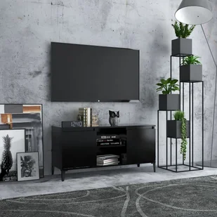 Ulepsz swoje wnętrze dzięki tej stylowej i eleganckiej szafce pod telewizor o industrialnym uroku. Ta szafka pod telewizor z czterema metalowymi nogami jest stabilna i wytrzymała. Kredens jest wyposażony w 2 półki i 2 przegródki i oferuje mnóstwo miejsca do przechowywania drobiazgów oraz przechowywania czasopism, książek, płyt DVD i urządzeń multimedialnych w uporządkowany i łatwo sposób. Jest również łatwy do czyszczenia wilgotną ściereczką. Kolor: CzarnyMateriał: