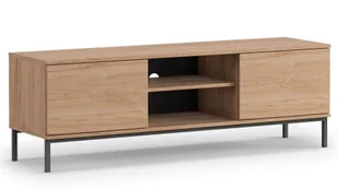 Szafka RTV QUERTY QT-05Nowoczesny system mebli do salonu, w trzech kolorach: BiałyCzarnyNatural Rockford HickoryZestaw mebli jest bezuchwytowy dzięki zastosowaniu systemu "push to open" w wybranych elementach został użyty siłownik gazowy. Nogi są wykonane z metalu w kolorze czarnym co nadaje zestawowi nowoczesnego stylu LOFT. W skład Querty wchodzi duża komoda, stolik kawowy, regał, szafka wisząca, witryna oraz dwie szafki RTV 100 i 150 cm. Meble zostały wykonane z płyty meblowej, obrzeża są wykończone trwałą oraz odporną na codzienne użytkowanie okleiną ABS.