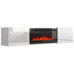 Szafka RTV LUXE 182,6x34,5x37,5 biały/biały połysk + czarny kominek