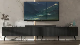 Szafka RTV Glamour pod Telewizor Czarny Mat Ryflowana Loft RTV Nogi czarne Metalowe 300 cm