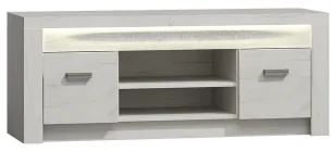 Brzegi mebla zostały precyzyjnie oklejone specjalistycznym tworzywem ABS o zwiększonej odporności na ścieranie i wilgoć. Drzwi zamontowane na 35 mm zawiasach puszkowych, regulowanych w 3 płaszczyznach są otwierane uchylnie za pomocą stylowych uchwytów z trwałego metalu. Wnętrze mebla zostało zorganizowane w wyjątkowo funkcjonalny sposób. W środkowej części umieściliśmy praktyczną otwartą półkę na sprzęt audio, dekoder lub nagrywarkę. W bocznych, zamykanych szafkach zmieszczą się dokumenty, płyty, akcesoria.