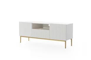 Szafka RTV Nicole 150 cm z wnęką - biały mat / złote nóżki