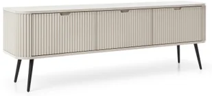 Szafka RTV Porto 168cm w kolorze cashmere trzydrzwiowa z ryflowanymi frontami i czarnymi nogami