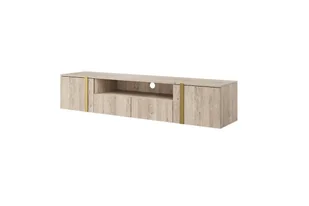 Szafka RTV wisząca Verica 200 cm z wnęką - dąb biszkoptowy / złote uchwyty