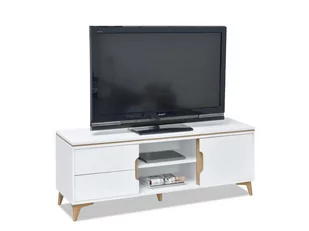 cechy z półkami otwartymi, z szufladami, pod telewizor, prowadnice kulkowe Kolorystyka kolor frontów: biały, jesionowy kolor główny: biały kolor korpusu - stelaża: biały, jesionowy kolor nóżek: jesionowy przeznaczenie biuro, salon styl wnętrzarski nowoczesny, skandynawski Wymiary i waga długość: