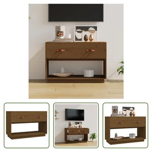 Szafka pod telewizor miodowy brąz 90x40x60 cm lite drewno sosnoweTa klasyczna szafka pod telewizor stanie się centralnym punktem Twojego salonu dzięki modnemu, a jednocześnie praktycznemu wzornictwu. Lite drewno sosnowe: Lite drewno sosnowe to piękny, naturalny materiał. Drewno sosnowe ma proste usłojenie, a sęki nadają mu charakterystyczny, rustykalny wygląd. Dużo miejsca do przechowywania: