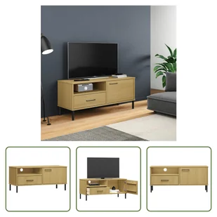 Szafka pod telewizor ma 2 przegrody i 1 szufladę, w których można przechowywać wszystkie czasopisma, płyty DVD i inne przedmioty. Prezentacja: Stabilny górny panel szafki pod telewizor zapewnia idealne miejsce do wyeksponowania przedmiotów dekoracyjnych, takich jak ramki na zdjęcia i rośliny. Metalowe nóżki: Metalowe nóżki zapewniają szafce pod telewizor solidność i stabilność.