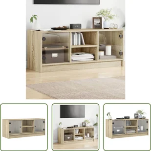 Szafka pod telewizor z przeszklonymi drzwiami dąb sonoma 102x37x42 cmTa szafka pod telewizor ma elegancki i klasyczny wygląd, dzięki czemu jest dekoracyjnym i praktycznym dodatkiem do wnętrza. Trwały materiał: Drewno inżynieryjne to wyjątkowej jakości materiał o gładkiej powierzchni, który charakteryzuje się wytrzymałością, stabilnością i odpornością na wilgoć. Szafka pod telewizor wykonana z drewna jest łatwa w czyszczeniu. Dużo miejsca do przechowywania: