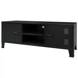 Duży i mocny blat będzie idealny do ustawienia telewizora i routera lub przedmiotów dekoracyjnych, ramek ze zdjęciami, a nawet roślin doniczkowych. 2 półki i 2 przegrody z drzwiczkami oferują mnóstwo miejsca na urządzenia multimedialne i do przechowywania mniejszych przedmiotów w zasięgu ręki. Ta szafka na telewizor posiada otwór na kable, który pozwala na schludne poprowadzenie przewodów poza zasięgiem wzroku. Wykonana jest z blachy, co czyni ją wytrzymałą i łatwą w czyszczeniu. Montaż jest prosty.