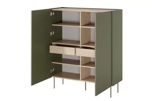 Kredens dwudrzwiowy z dwiema szufladami Desin 120 2D2SZ - oliwka / dąb nagano, Szerokość: 120, Wysokość: 140, Głębokość: 40, Montaż: Samodzielny.