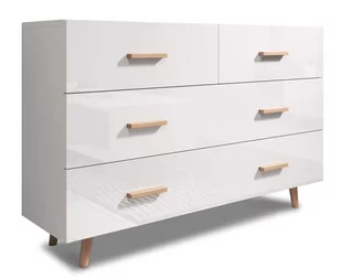 Elegancka i praktyczna komoda sweden 4 biały mat / biały połysk będzie znakomitą dekoracją nowoczesnych wnętrz. Cztery szuflady szafki to dodatkowa i wygodna przestrzeń do przechowywania. Jej białe fronty z połyskiem są wykonane z płyty foliowanej. Matowy korpus komody sweden 4 biały mat / biały połysk został zrobiony z trwałej i wytrzymałej płyty laminowanej, która charakteryzuje się zwiększoną odpornością na wilgoć, temperaturę oraz uszkodzenia mechaniczne. Jest łatwa w czyszczeniu i nie zmie