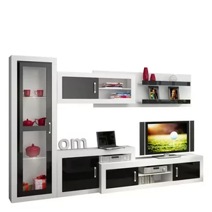 Zawartość zestawu: Dostawka RTV VRN-04 x1, RTV VRN-05 x1, Szafka wisząca VRN-07 x1, Witryna VRN-08 x1;