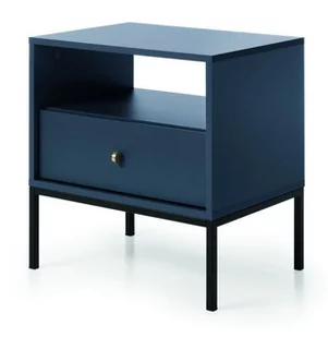 Stolik mono ms54 granatowy to nowoczesny stolik kawowy, który może stać się uzupełnieniem strefy wypoczynkowej w twoim salonie, czy pokoju dziennym. Posiada prostokątny blat. Wyposażony jest w pojedynczą otwartą półkę oraz szufladę z subtelnym, złotym uchwytem. Stolik mono ms54 granatowy wykończony jest w granatowym kolorze. Został wykonany z płyty laminowanej, którą charakteryzuje trwałość i wytrzymałość.