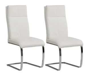 Zestaw 2 krzeseł yadgir kr0140-met-y016 chrom / biały to praktyczny komplet dwóch krzeseł, które doskonale nadają się do wnętrz wykończonych w nowoczesnym stylu. Wraz ze stołem umożliwią stworzenie wygodnego miejsca do wspólnych spotkań i posiłków. Krzesła wyposażone są w wysokie oparcia oraz stelaże w kształcie płóz, które zostały wykonane z metalu i wykończone w kolorze chrom. Siedziska i oparcia zestawu 2 krzeseł yadgir kr0140-met-y016 chrom / biały są tapicerowane ekoskórą w białej barwie z
