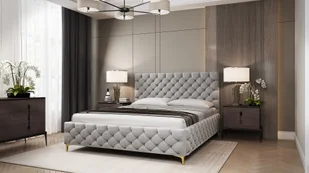 Adidar Katharina Łóżko tapicerowane 160 x 200 cm - Metalowa rama z podnośnikami hydraulicznymi Łóżko podwójne - Jasnoszary Amor Velvet 4318
