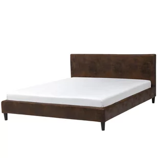 Rama łóżka ze zdejmowanym pokrowcem z tkaniny imitującej skórę To eleganckie, tapicerowane łóżko pasuje do sypialni urządzonych zarówno w stylu nowoczesnym, jak i minimalistycznym. Jego brązowe obicie doskonale imituję skórę naturalną, stożkowate nóżki dodają mu skandynawskiego uroku. To, co czyni to łóżko niezwykłym, to zdejmowany pokrowiec ramy łóżka. Zmieniając tapicerkę zagłówka i ramy, błyskawicznie odświeżysz aranżację swojej sypialni. Szczegóły: Kolor: Brązowy, Ciemne drewno.