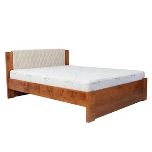 Drewniane łóżko Malmo Ekodom olchowe z tapicerowanym wezgłowiem.