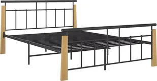Elior Rustykalne metalowe łóżko czarny + jasny dąb 140x200 cm - Paresa