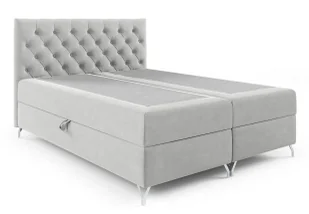 Materac nawierzchniowy (topper) z pianki T-25 o wysokości 4 cm – dla większej miękkości i wygody. Dwa pojemne schowki na pościel – idealne na koce, tekstylia i sezonowe dodatki. Automat na sprężynach ułatwiający otwieranie pojemnika, nawet przy codziennym użytkowaniu. Eleganckie, srebrne nóżki metalowe dodające lekkości całej formie. Dekoracyjne pikowanie zagłowia z tapicerowanymi guzikami.