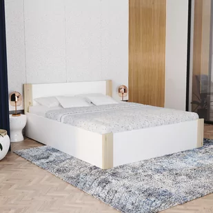 Łóżko o nowoczesnym designie z drewnianymi elementami wykończenia. solidna, stabilna konstrukcja z płyty stelaż z 12 mocnych desek wykończenie z drewna sosnowego montaż łóżka wykonany za pomocą łączników mimośrodowych daje gwarancję wysokiej wytrzymałości i stabilności łóżka.