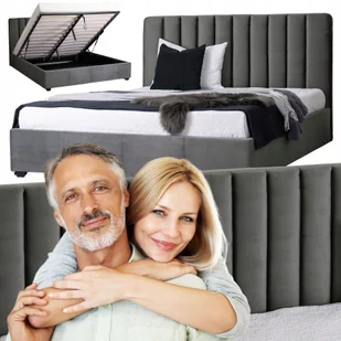 Łóżko 160x200 Podwójne Tapicerowane MARI z Pojemnikiem Welurowe Szare Loft ⭐⭐⭐⭐⭐