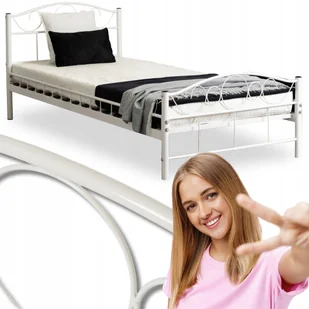 Łóżko Metalowe Jednoosobowe 90x200 cm ze Stelażem GRIFFIN Metalowe Białe