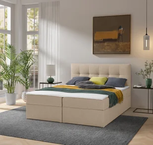 Łóżko kontynentalne Toronto 140200 (Herbi 55 - Latte) z materacem bonell i topperem