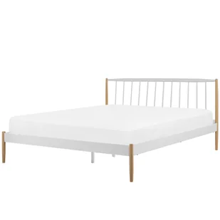 Przytulne podwójne łóżko na spokojne noce. To nowoczesne łóżko z metalową ramą w kolorze białym i metalowymi nogami o wyglądzie drewna pasuje do wielu stylów wyposażenia i nadaje sypialni nowy wygląd. Można je ozdobić pościelą w szerokiej gamie wzorów i kolorów, dzięki czemu zawsze wygląda idealnie. Solidna rama z listwami z drewna topoli zapewnia dobrą nośność, dzięki czemu można cieszyć się spokojnymi nocami i budzić się w wymarzonym łóżku. Szczegóły: Typ: Łóżko podwójne Styl: