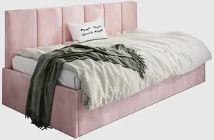 Łóżko młodzieżowe SORA 120x200 różowe z tapicerowanym panelem i pojemnikiem na pościel MKPOL