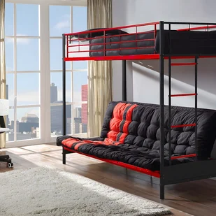 Łóżko loftowe z rozkładaną sofą i materacem futon - 90 x 190 cm - Metal - Czerwono-czarny - MODULO V