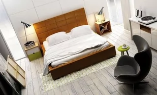 Opcja zamontowania pojemnika na pościel, to idealne rozwiązanie dla małych sypialni. W łóżku z pojemnikiem dzięki zastosowaniu siłowników gazowych podnoszenie stelaża nie stanowi żadnego problemu, dno podwieszone na ramie łóżka, dzięki czemu nawet przy zastosowaniu wysokich nóg nie jest widoczne. Łóżko dostępne w rozmiarach pod materac 140x200,160x200, 180x200, 200x200, oraz także po uzgodnieniu ze sklepem na inne, niestandardowe wymiary. W standardzie boki łóżka do wyboru w dwóch gru bo ściach 5 lub 8 cm i wysokości 20 lub 25 cm (bez nóżek). Za dopłatą boki mogą być wyższe 30 lub 35 cm.