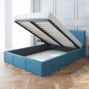 Łóżko LAKI NEW CONCEPT tapicerowane : Rozmiar - 140x200, Tkanina - Grupa I, Pojemnik - Z pojemnikiem, Nogi - Metalowa srebrna, Grubość ramy - 5 cm