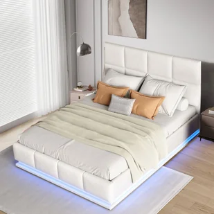 Oświetlenie LED doda nowoczesnego stylu do Twojej sypialni, a dzięki pilotowi możesz zmieniać różne kolory i jasność, aby wygodnie leżeć. Wysokość zagłówka jest regulowana, a zakres regulacji wysokości wynosi około 10 cm różnicy. Duża podstawa łóżka pod listwową ramą oferuje mnóstwo miejsca do przechowywania koców, poduszek lub prześcieradeł. Czarna włóknina na spodzie sprawia, że przechowywanie jest czystsze. Drewniane listwy minimalizują hałas i wydłużają żywotność materaca podczas snu.